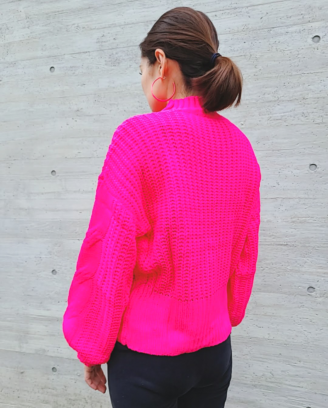 ネオンピンク ハーフタートルニットセーター ネオンカラー ニット ざっくりニット 蛍光 ピンク 派手 個性派 おしゃれ 冬デート ネックプルオーバー 冬ファッション 女子会 おでかけ お散歩 Neons